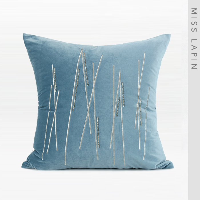 MISSLAPIN简约现代中式/沙发靠包靠垫抱枕/浅蓝色不规则绣花钉珠 蓝色 50x50(不含芯)